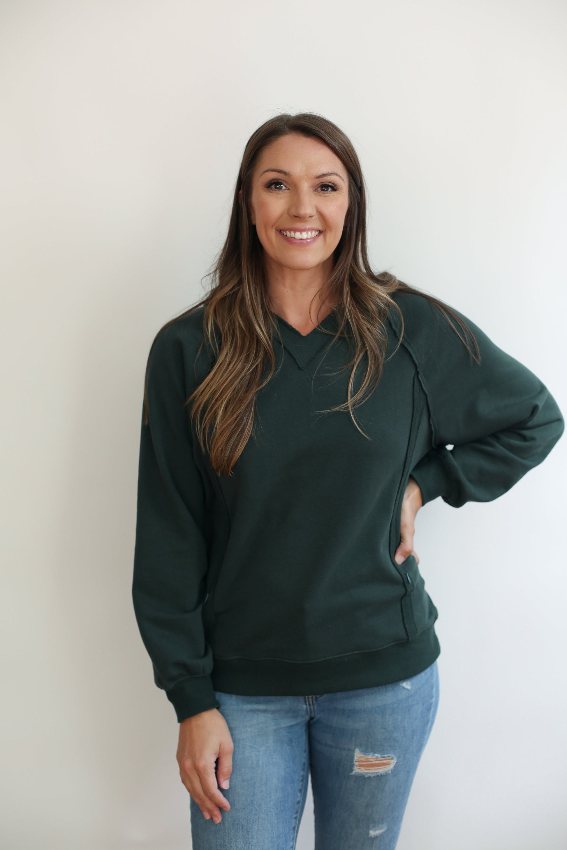 This on-trend hoodie with exposed seaming detail is made of a premium cotton and spandex blend and makes this sweatshirt one of the softest yet. The fabric is buttery to the touch, and the perfect mid-weight to stay comfortable without overheating.