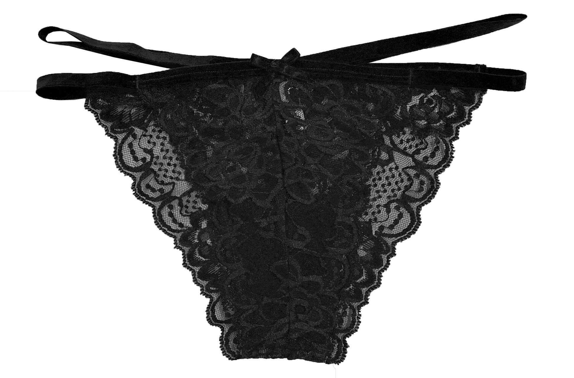 Delicate lace front with elastic straps at the hips