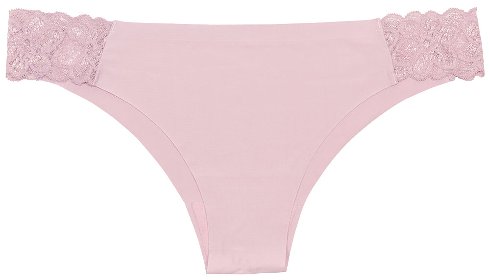 This classic bikini combines modern design with timeless comfort. The laser-cut edges provide a seamless look, while the delicate lace at the hips adds a touch of femininity. With a slightly cheeky backside, it offers a flattering fit for everyday wear.