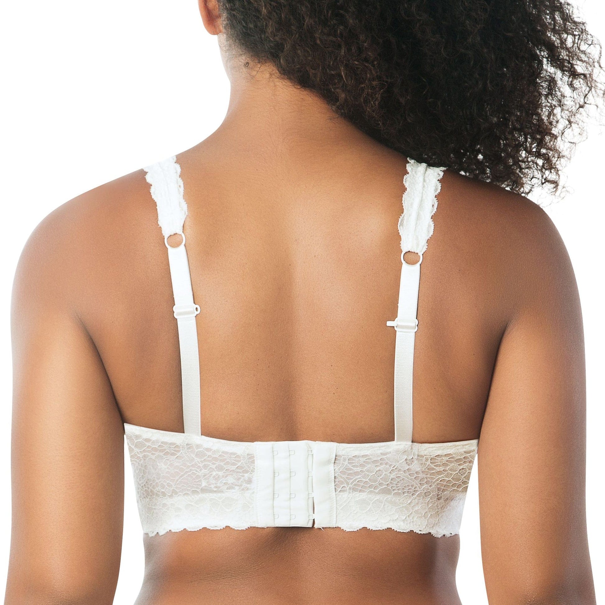 Pretty and lacy, this wire-free bralette is very supportive and super comfortable. The convertible J-hook feature allows for a racerback option. Specially designed for full busted and full figure women. Inclusive sizing and a wide variety of colors available.