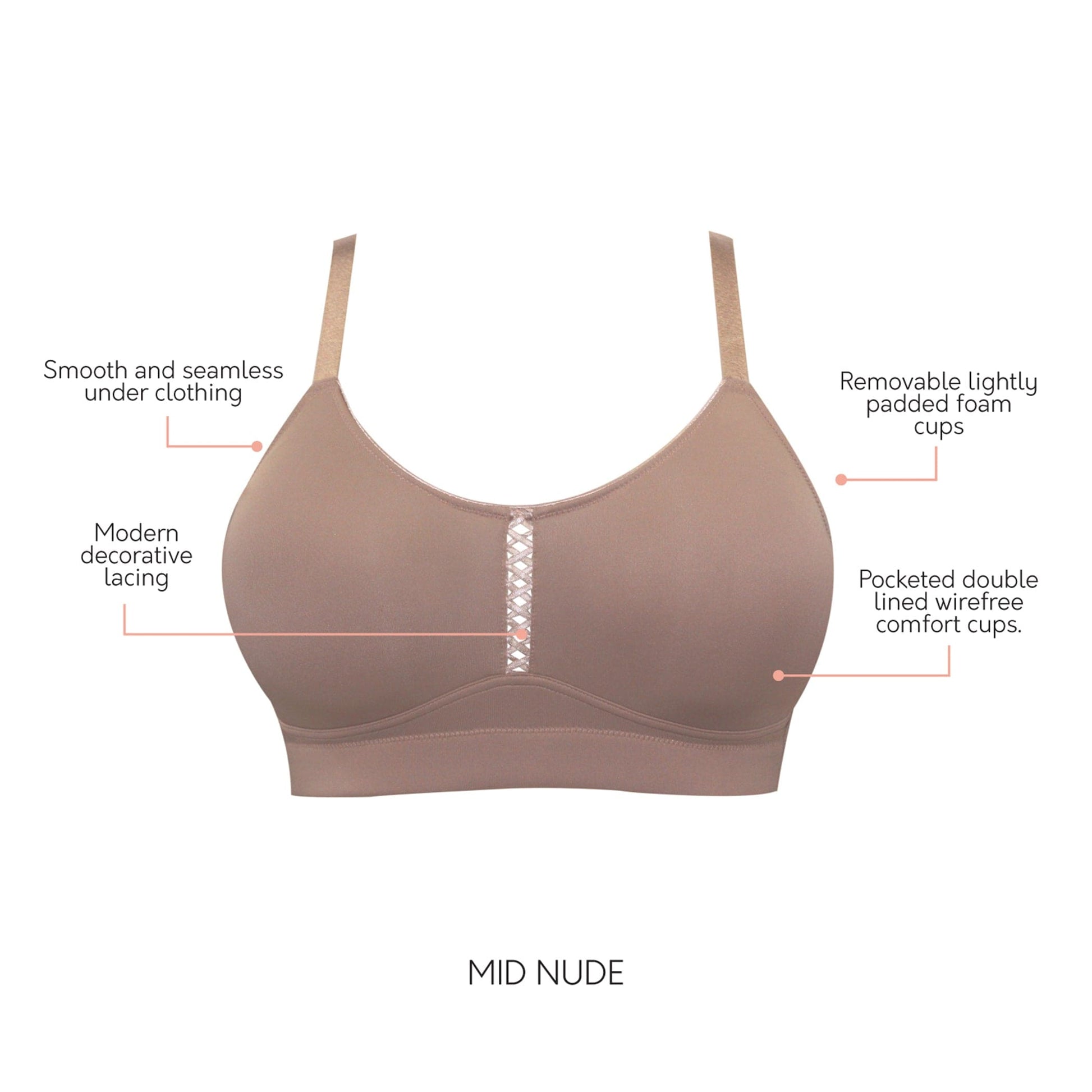Comfy yet supportive, this seamless wire free bralette looks and feels perfectly smooth under clothing. The soft double lined cups include a pocket with versatile removable thin foam cups for better support and shaping based on your preference.