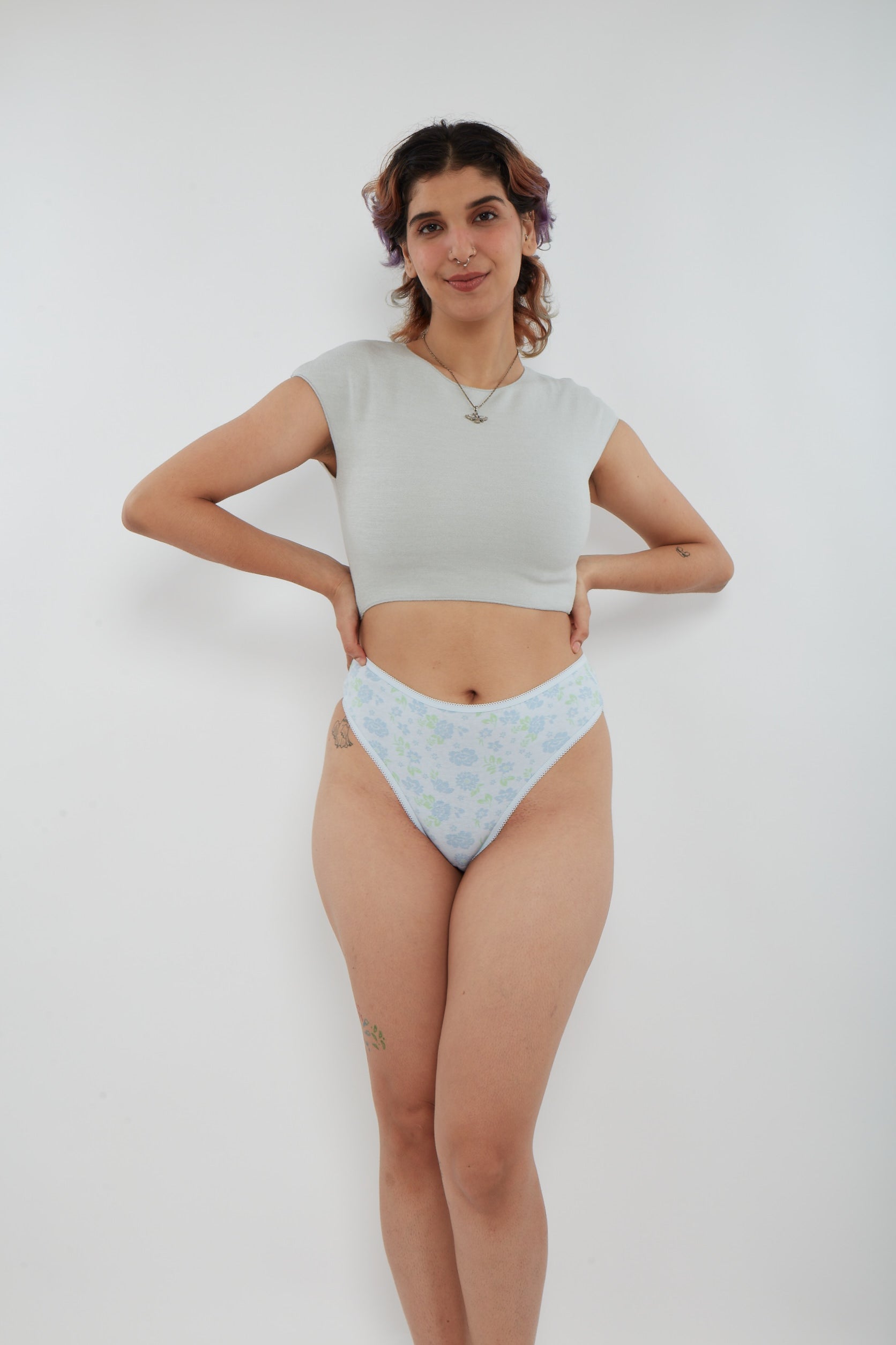 Start your day with reliable comfort in the Printed Cotton High Waist Bikini with Picot Trim.