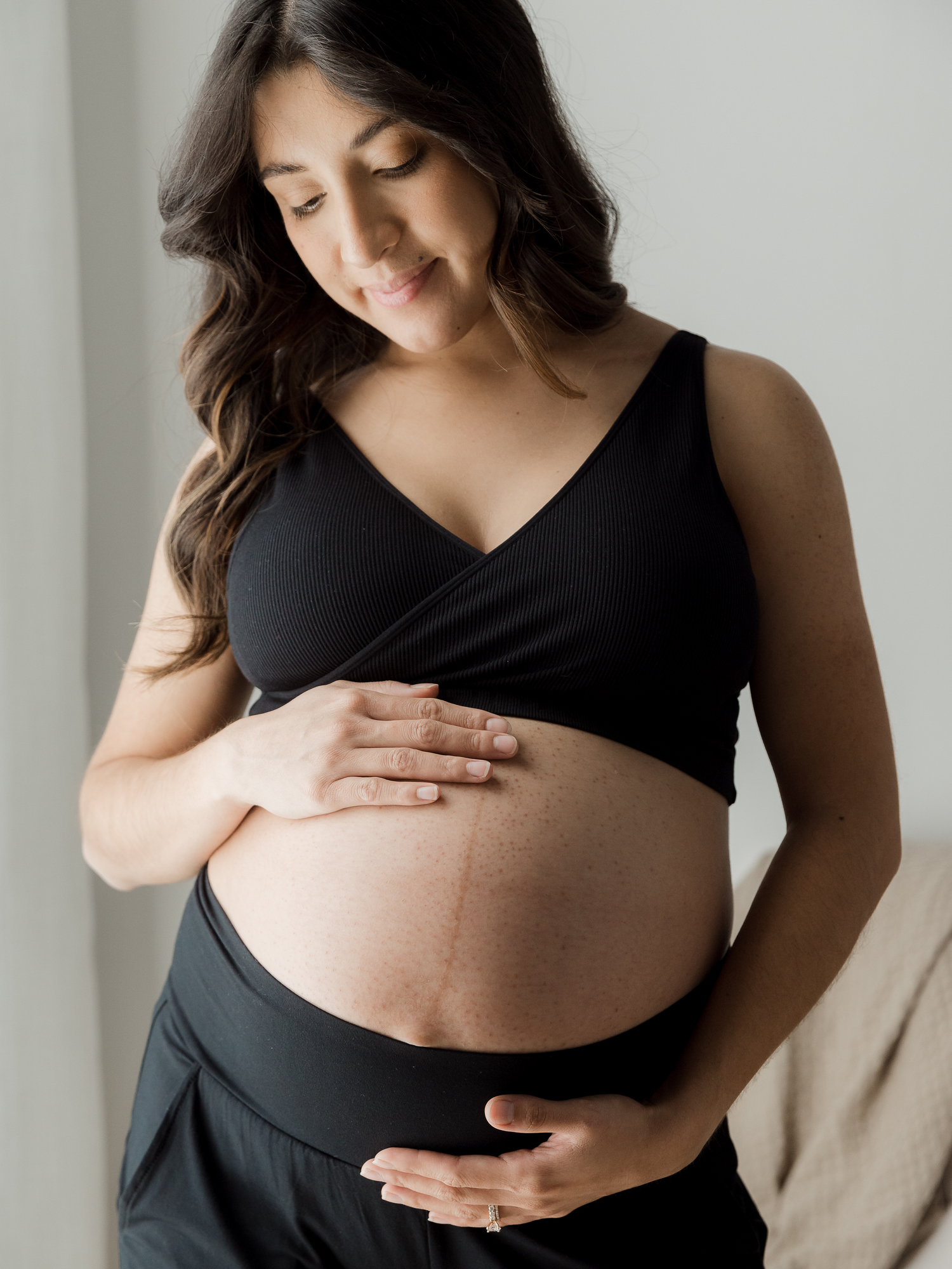 Best-in-class for comfort, before and after baby. You’ll reach for this dreamy pullover bra over and over (trust us!). This ultra-soft bra is perfect for lounging, running errands, and sleeping, and the simple crossover design allows for easy nursing access once your baby arrives.
